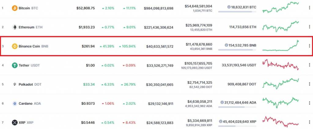 Geçen hafta BNB fiyatı 350 doları civarından yaklaşık %65’lik bir artışla 638 dolara kadar yükseldi. Binance ekosistemi ve Binance Smart Chain (BSC), her geçen gün yeni rekorlar kırıyor. Ayrıca, en büyük rakibi Ethereum ile yılın başından beri aralarındaki açığı kapatıyor ve şu anda Ethereum’un sadece üçte biri büyüklüğünde.