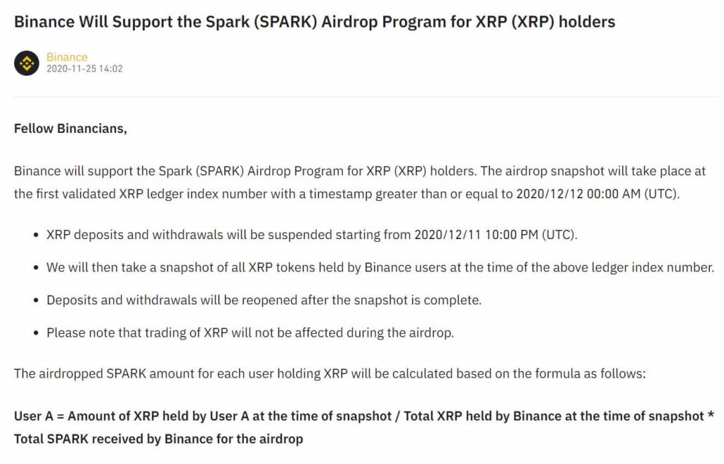Airdrop 14.12.2020 ile 21.12.2020 tarihleri arasında Binance üzerinden spot, marj veya vadeli ticarette, en az bir işlem tamamlayan bütün Binance kullanıcıları kapsadı. Son bir haftada Binance’de en az bir al sat yapan tüm kullanıcılara bugün itibariyle tanesi şu an 0,15 dolardan el değiştiren TWT coinlerden 100 adet gönderildi. (100 TWT=115 Türk Lirası)