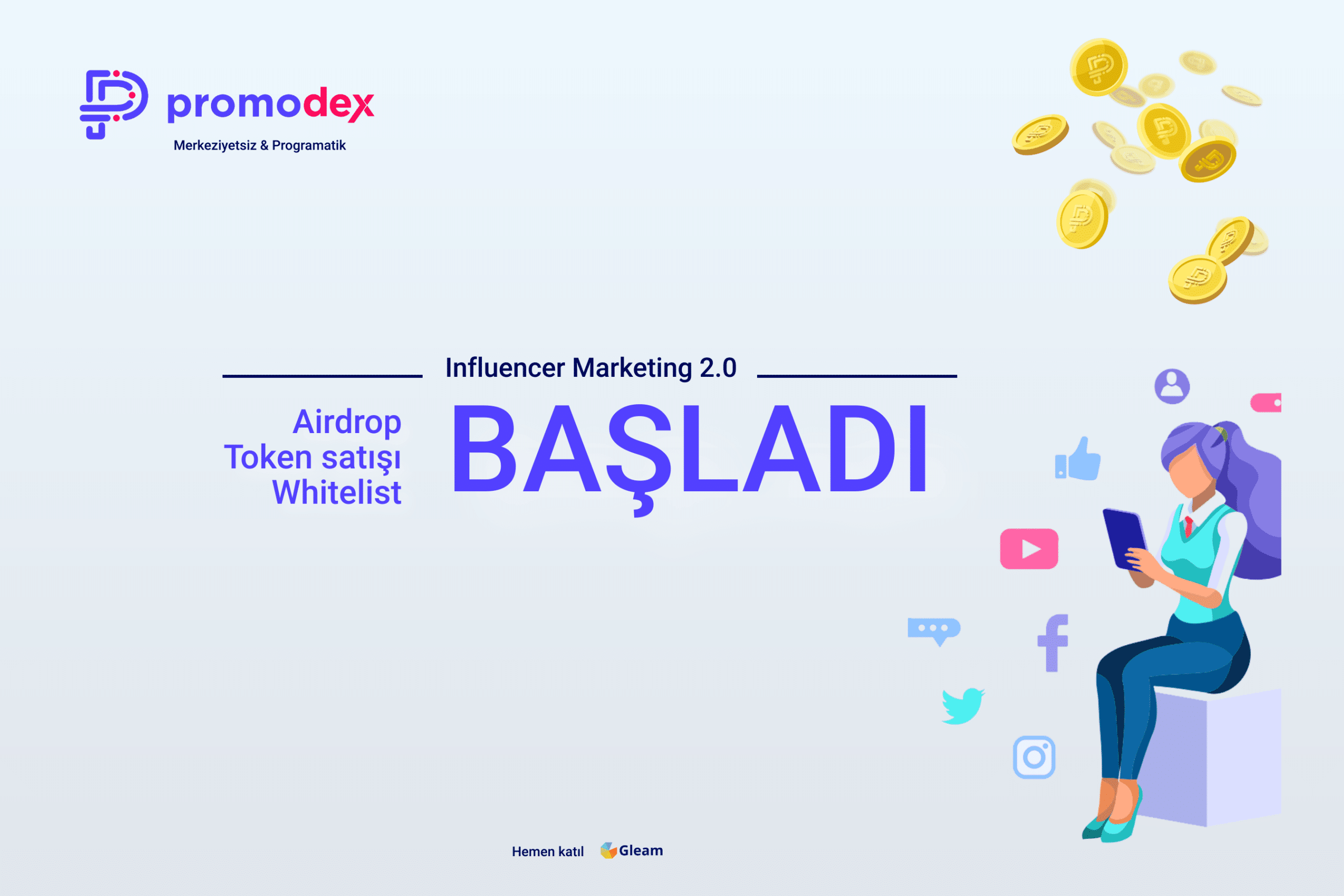 Promodex, 19 Kasım 2021 Türkiye saati ile saat 19:00’da influencer, yayıncı ve bloggerlara özel “Private Sale Whitelist & Özel teklifler (influencerlar için)” kampanyası başlatıyor. Toplam 162.000 USD değerinde 9 milyon PROMO tokenın satılacağı Private Sale’de ki token alma listesinin belirlendiği kampanya 05 Ocak 2022 tarihinde sona erecek.
