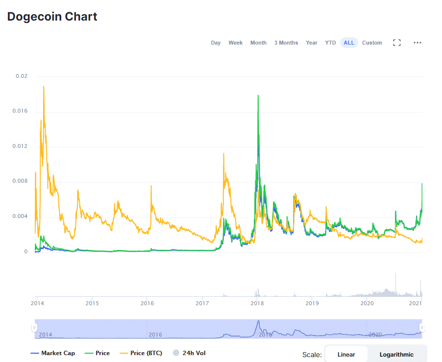 Dogecoin, milyarderler, rock yıldızları ve YouTuberlar tarafından pompalandıkça yükseldi ve 10 milyar dolarlık bir varlık haline geldi.