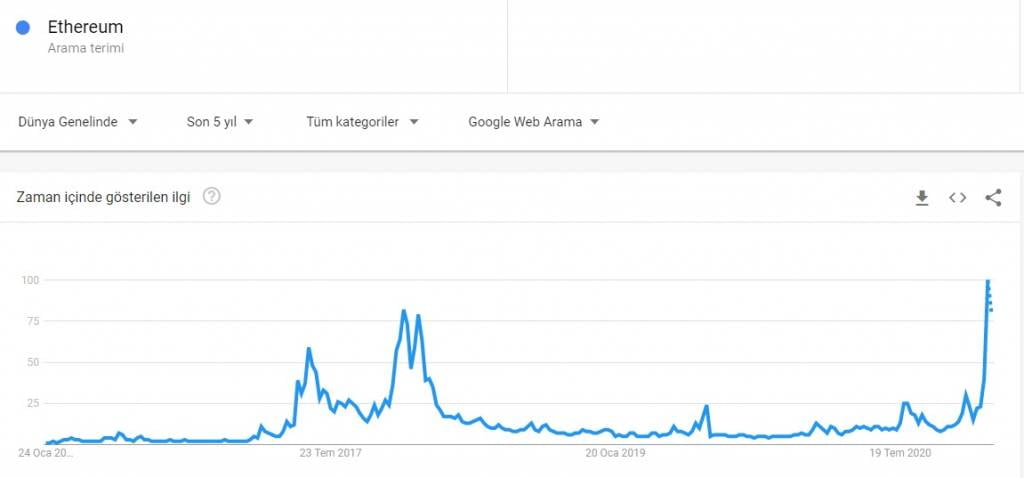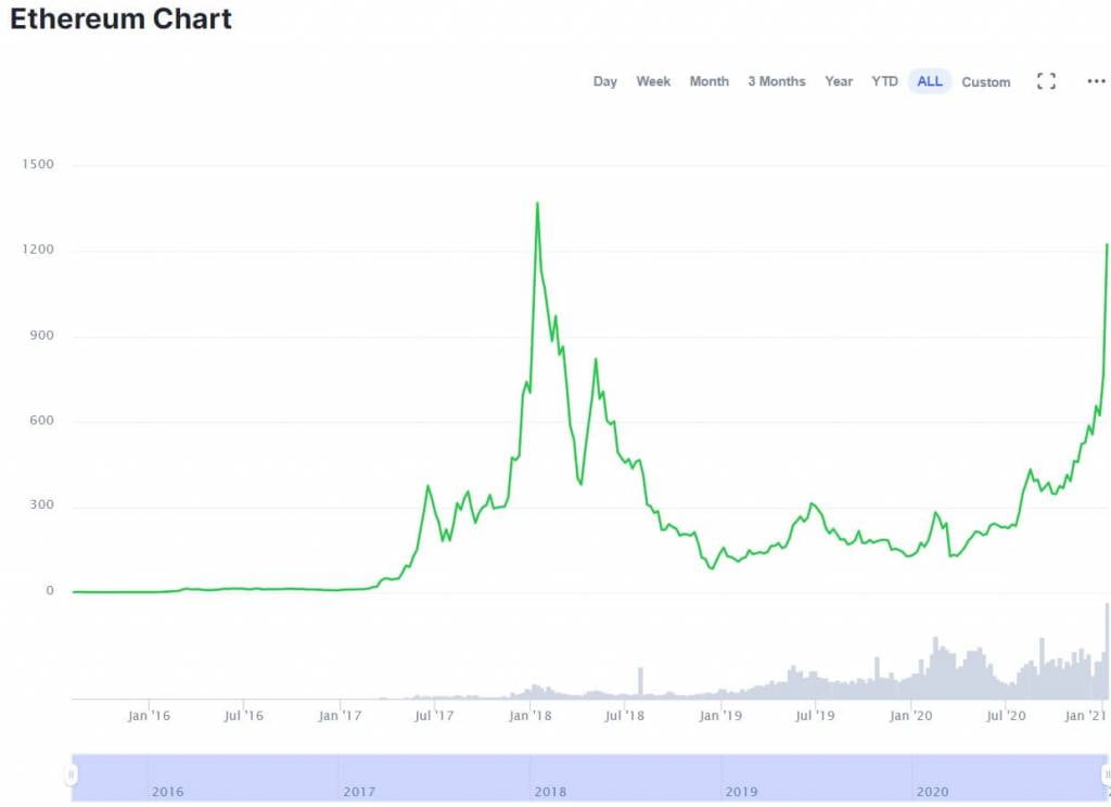 Yazının kaleme alındığı saatte Ethereum için yeni bir tüm zamanların rekoru (ATH) an meselesi. Ethereum boğaları $2K’lik direnci aşmak için mücadele ediyor. Ethereum 20 Şubat 2021’de 2,036 doları görerek tüm zamanların rekorunu kırdı.