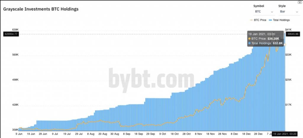 Grayscale yatırımlarını hep aynı hedge fonlarından almıyor. Şirkete, son zamanlarda farklı kurumlardan, emekli maaşlarından ve bağışlardan da fon girişleri oluyor. Aynı zamanda yapılan yatırımların miktarında da hızlı bir artış var.