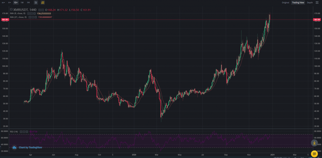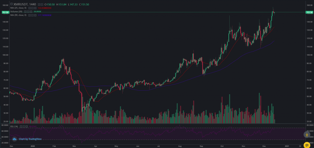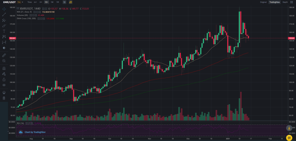 XMR coin fiyatı ve grafiği Kaynak: TradingView